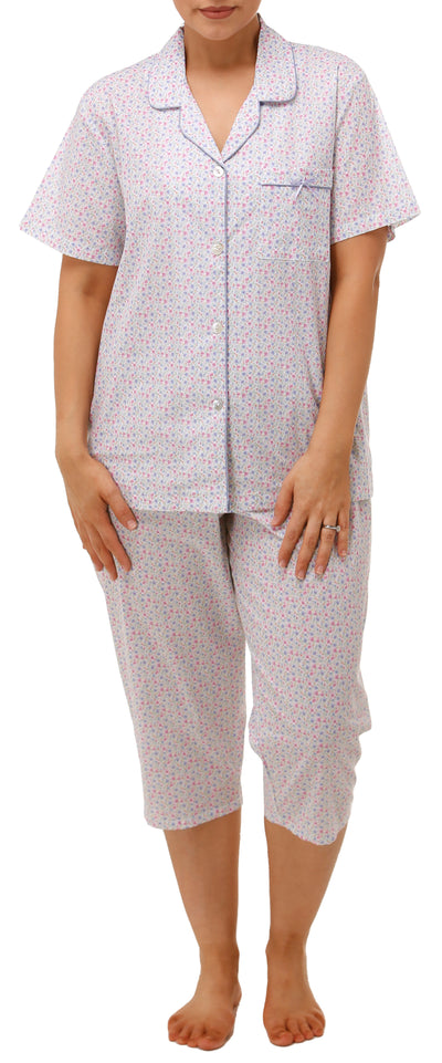 Ditsy Sleeveless Short Nightie in light blue floral fabric