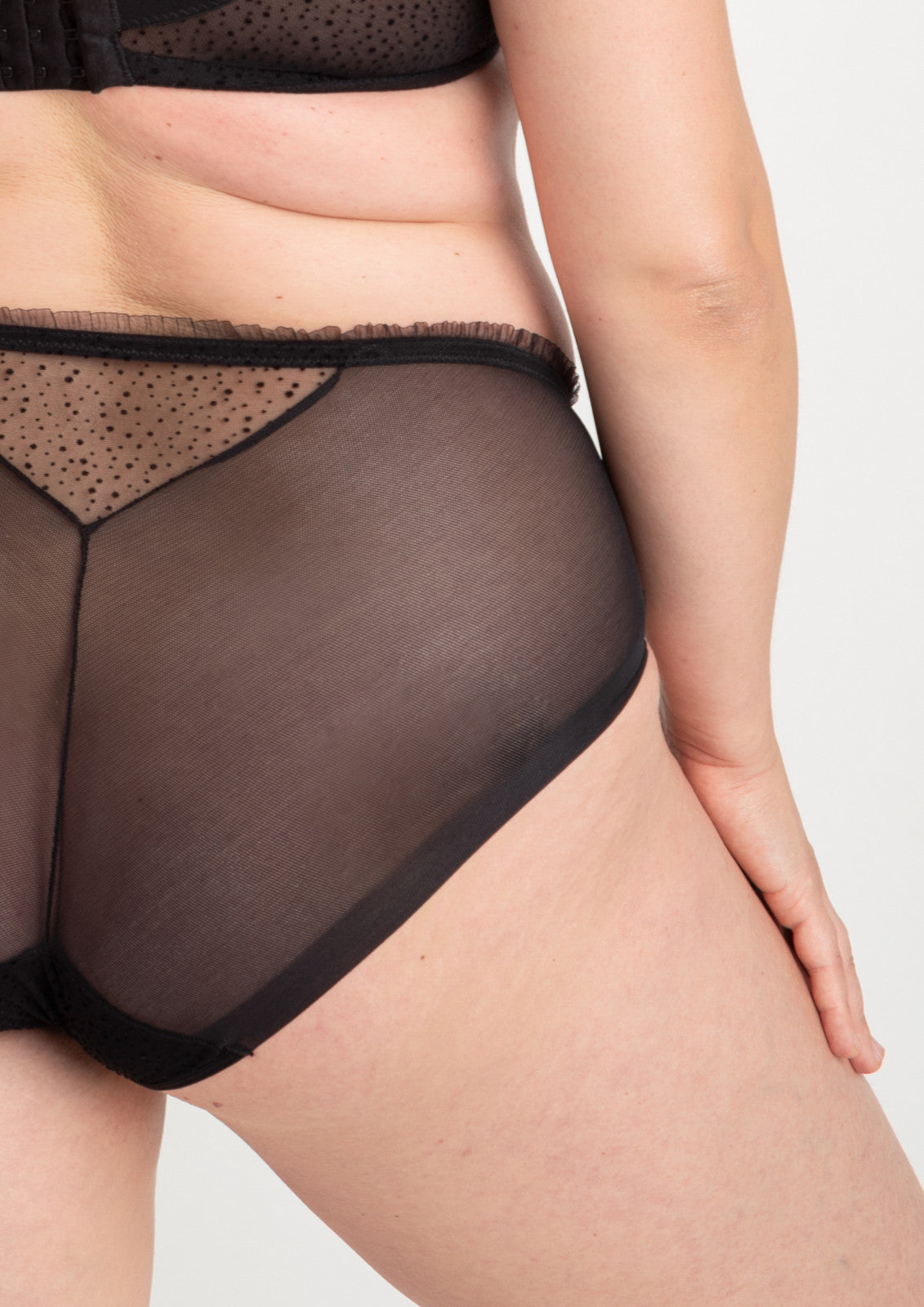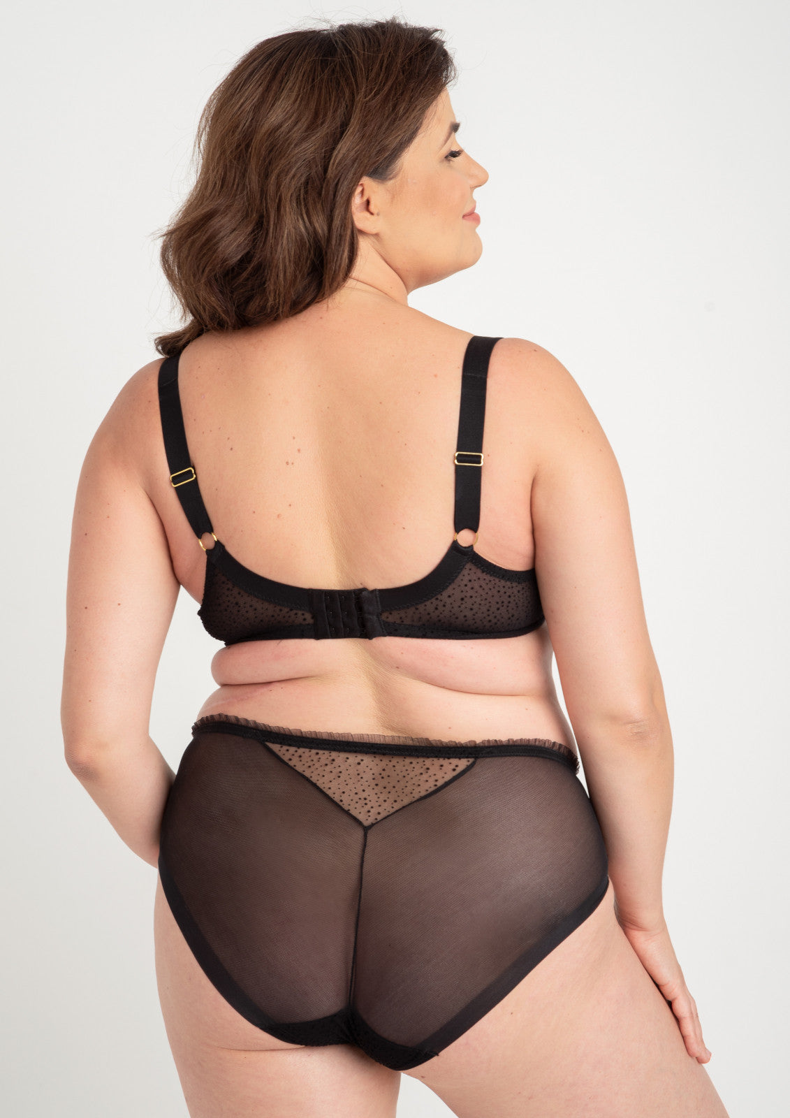 Noble, refined, flirtatious - meet Valentina. The line is made of flocked tulle, which is a hit of the upcoming season. Valentina is like a little black dress - it perfectly combines with many styles. It can not be missing in your underwear.